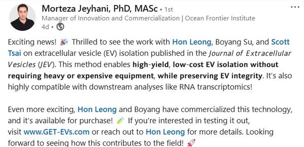 LinkedIn post by the co-inventor, Dr. Morteza Jeyhani